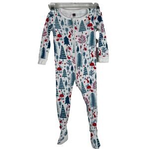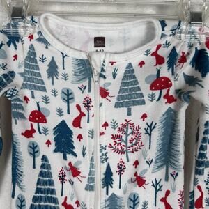 Tea 9-12 one piece Winter footsie pajamas mushrooms, trees & fairies zip front