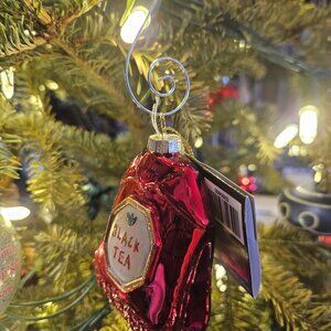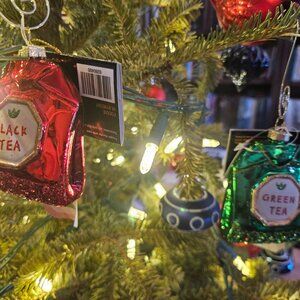 Tea Bag Ornaments - Set of Two Black Tea & Green Tea - Shiny Glass
