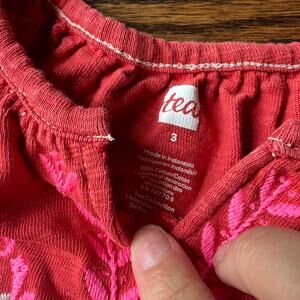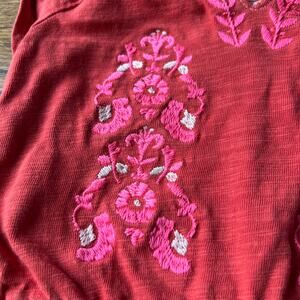 Tea Collectiom Red and Pink Floral Embroidered Short Sleeve Dress - 3