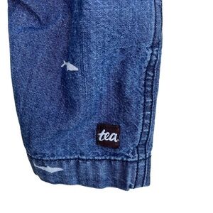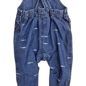 Tea Collection 100% Cotton Shark Print Denim Overalls Snap Closure Size 9-12 Mo