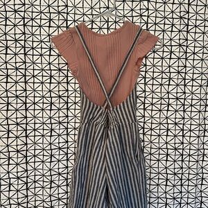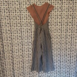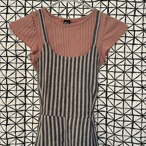 Girls Size 10 Pink Shirt and Striped (Blue/Cream) Romper EUC