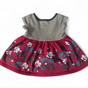Tea Collection baby girls' dress, striped top with navy trim and floral print skirt with two little side pockets.