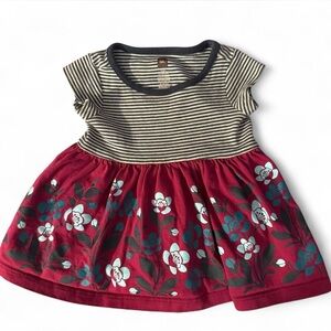 Tea Collection baby girls' dress, striped top with navy trim and floral print skirt with two little side pockets.