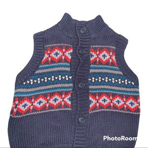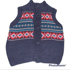 Tea Collection Arata Navy Blue Button Front Fair Isle Sleeveless Sweater Vest size XS 2-3. Great condition.