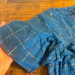 Tea Collection Blue ruffled a-line dress, Puff Sleeves, size 5