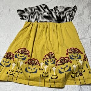 Tea Collection Katarina Und Otti Blumen empire dress in yellow cypress. Short sleeve mixed print dress with striped top and yellow floral print skirt. Very good condition, light mark on front (see photo). Size 6.