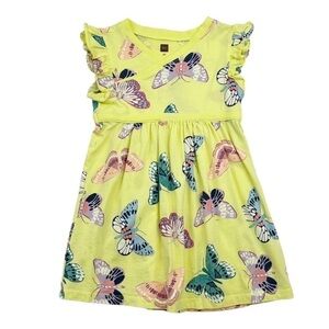 Tea Collection Butterfly Print Wrap Neck Dress 12/18m yellow
