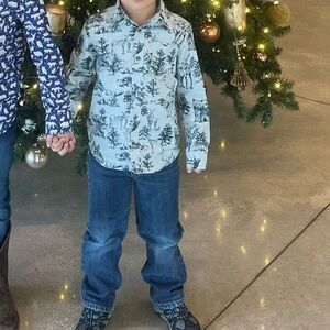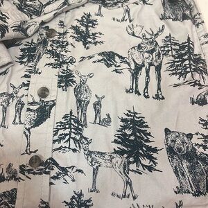 Tea Collection wildlife toile button down shirt. Stunning blue gray with dark green. Size 5, good used quality with no holes or stains. Smoke free home.