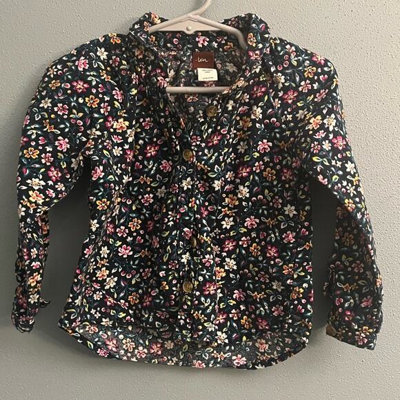 Tea Collection navy blue button down shirt with floral pattern. Size 2