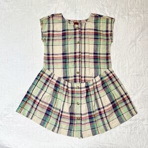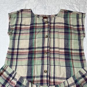 Tea Collection Daniela short sleeve button shoulder dress. Linen / cotton blend fabric in colorful plaid. Very good condition. Size 4.