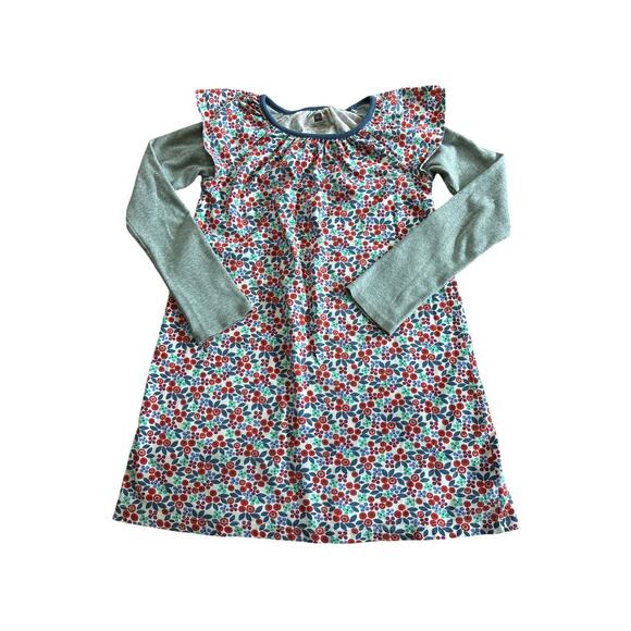 cotton dress with floral print , and contrast grey sleeves . Light wash wear, but no stains.