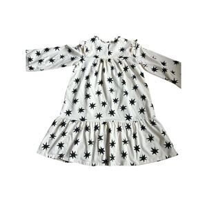 euc cream cotton spandex dress with black stars. Button closure in the back.