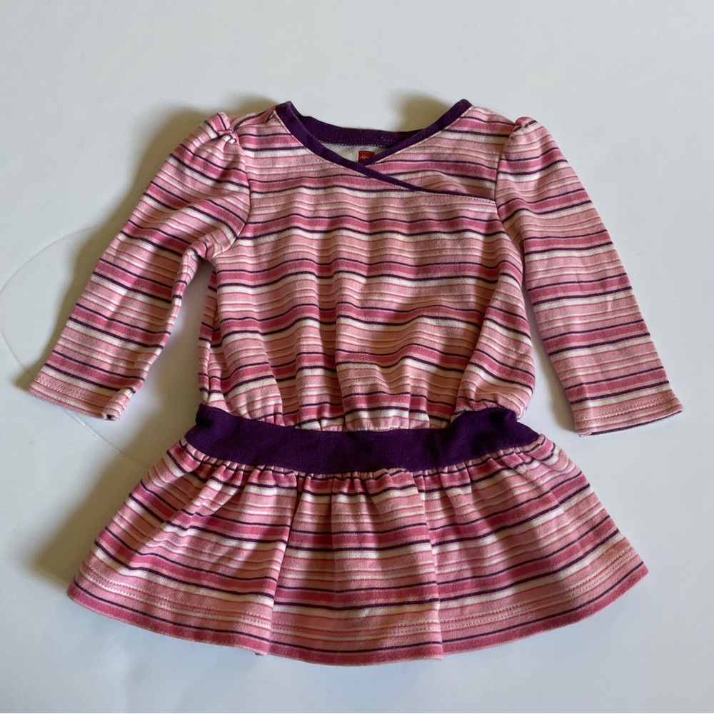 Pink Stripe Wrap neck Drop waist Dress #teacollection #stripes
