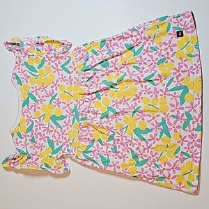 Tea Collection Dress Ruffle Short Sleeve Crew Neck Malagasy Vanilla Floral 3T