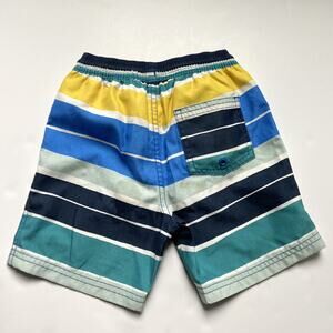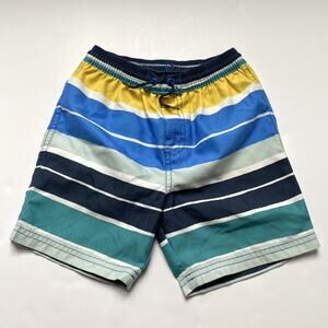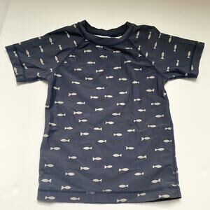 Tea collection fish print rash guard with matching stripe swim trunks. Top is a size 4 and bottoms are a size 4t.