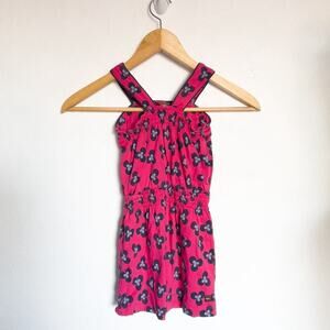 Tea Collection Flower Romper Shorts Floral Girls Pink Magenta Navy Blue Size 3