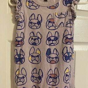 Adorable purple shirt sleeve light weight romper with French Bulldog print