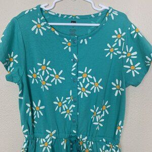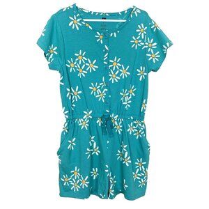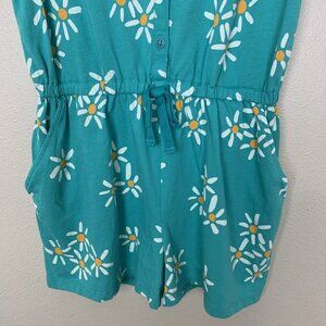 Tea Collection Girls 12 Romper Short Sleeve Shorts Henley Knit Green Floral