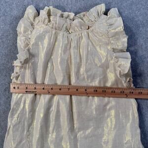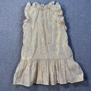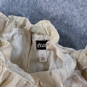Tea Collection Gold Shimmer Ruffle Party Dress Size 7 Sleeveless High Neck Short