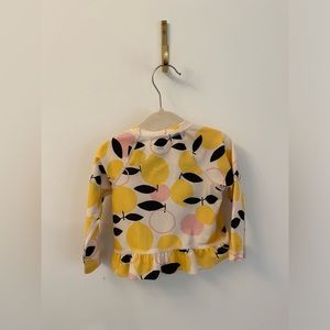 Rash guard swim top, light stain on front that’s untreated. Cute pear motif 🥰