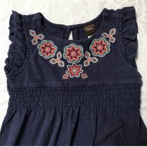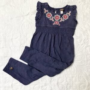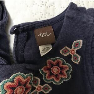 Tea Collection Martha Berry Embroidered romper. One piece outfit in Navy blue with pants and short sleeve top. Features beautiful floral embroidery. Very good condition, minor fade. Size 18-24 months.