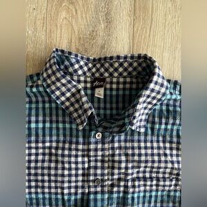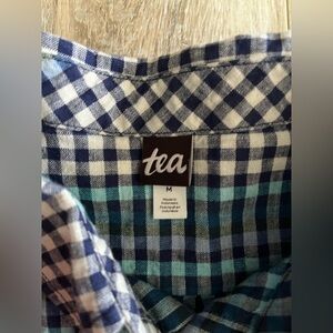 Tea Collection Men’s Button-Up Woven Shirt Lamu Plaid Cotton Linen Mix - Medium
