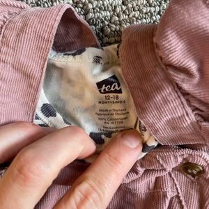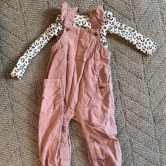 Corduroy overalls with ruffle shoulders paired with Tea Collection onesie size 12-18mo