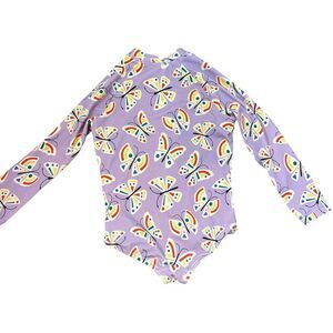 Tea Collection One Piece Bathing Suit 4T Purple Butterfly Zip Long Sleeve Girls