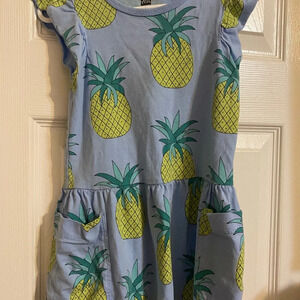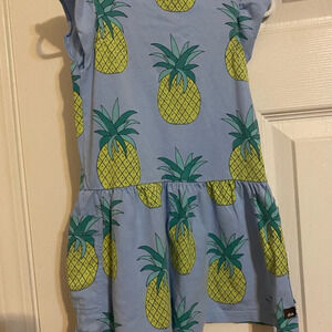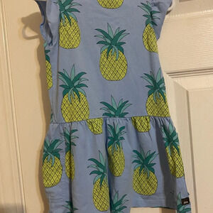 Tea Collection Pineapple Dress Blue short flutter sleeve tshirt dress with pineapple print Two front pockets Size 3 Smoke free home