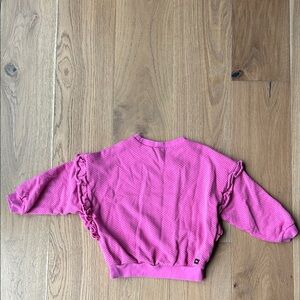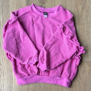 Charming pink sweatshirt with ruffle details. Soft fabric for cozy wear. Excellent used condition.