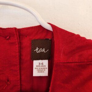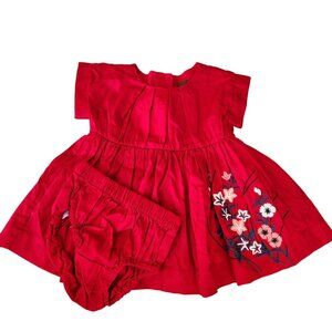 Tea Collection Red Cotton Dress Floral Emboirderey w/ Bloomers Girls 3-6 Months
