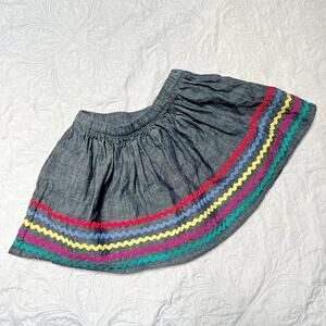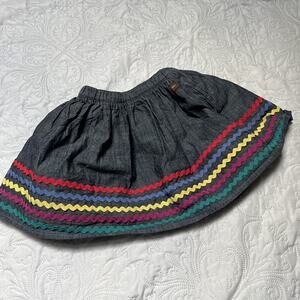 Tea Collection tic rac twirl skirt. Pull on chambray denim skirt with rainbow stripe ric rac details. Very good condition. Size 4.