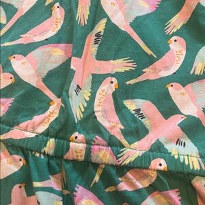 Cute tropical bird romper from Tea Collection, size 6. Good to very good condition for normal wear. Has pockets!