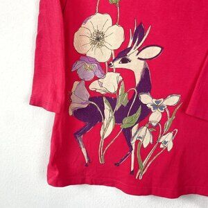 * Features: original graphic print, hits above the knee, 100% cotton jersey, long sleeves, bright pink with deer graphic print