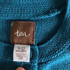 New with tag baby cardigan. Beautiful teal color in two sizes 9-12M and 12-18M
