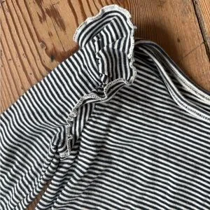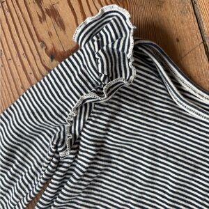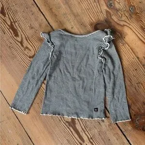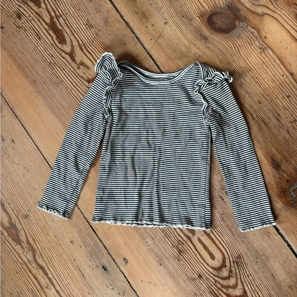 Adorable striped long sleeve top with ruffle shoulders. Excellent shape.