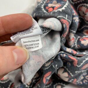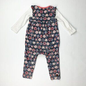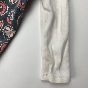 Sweet abstract floral layered ruffled romper from Tea Collection. This piece is from their USA collection. Listed as PLAY for fabric fading and light staining on the sleeves. Size 12/18mo.