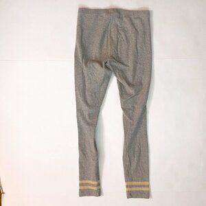 Fun and comfy pull on leggings. Grey with gold bands. Ribbed and super soft. A great layering piece.