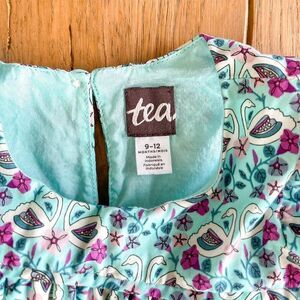 Tea Collection Swan Print Dress with Bloomer, Size 9-12M