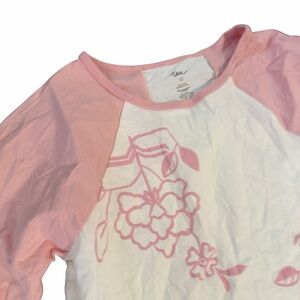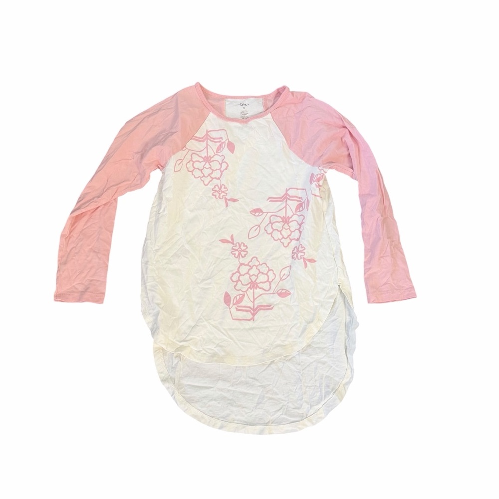 Adorable long sleeve tee with floral print. Soft pink and white colors. Ideal for casual outings.