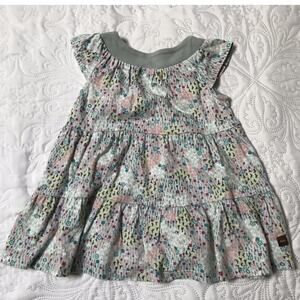 Tea Collection Wandoo Print dress. Multicolored floral print short sleeve dress. Good condition, some light fading. Size 9-12 months.