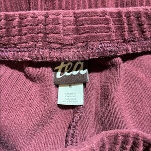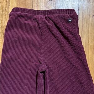 Stylish burgundy corduroy-like ribbed pants. Comfortable and casual design. Perfect for everyday wear.