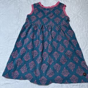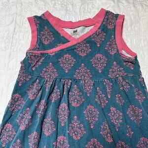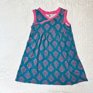 Tea Collection Punjab Paisley Wrap Neck Dress. Sleeveless print dress in marina blue and pink. Play condition, light fading and spit on neckline. Size 5.