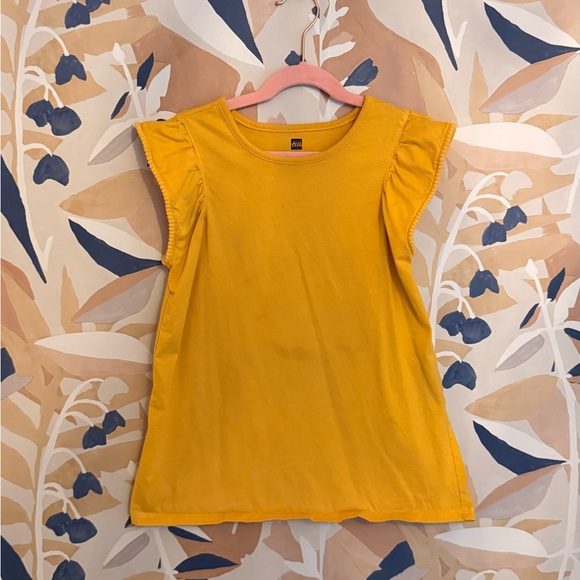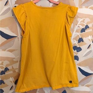Bright yellow top with ruffle sleeves. Perfect for casual wear.