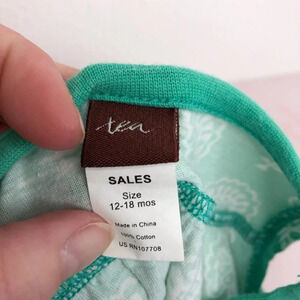 Tea Collection dress turquoise with white print flutter sleeve size 12-18 months