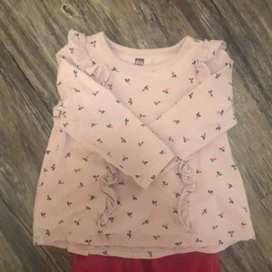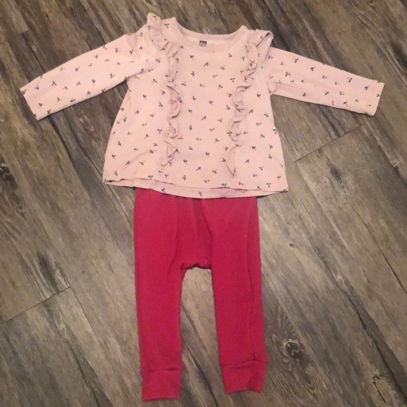 Tea collection ruffle top baby set in baby radish! Beautiful condition. No flaws. No stain. No pulls. Size 12-18 mnth.