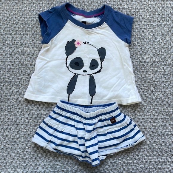 Tea collection shirt and skort set. Top is 6-9 mo, bottom is 3-6 mo. Top ran short for my daughter. Excellent condition. No stains.