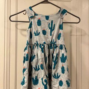 Adorable fit-and-flare sleeveless dress with button straps with cactus pattern. 100% cotton, super soft. Green marker stain at top of bodice; otherwise in good used condition.
