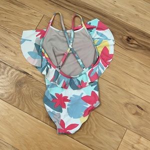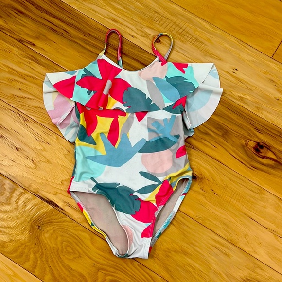 Beautiful colors Able to tighten straps in the back Cute ruffle Good condition