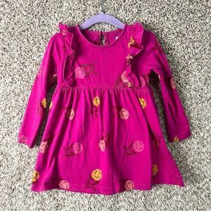 Excellent used Condition Baby Girls Tea Collection Pink Floral Print Ruffled Dress in Kids Size 18-24 Months